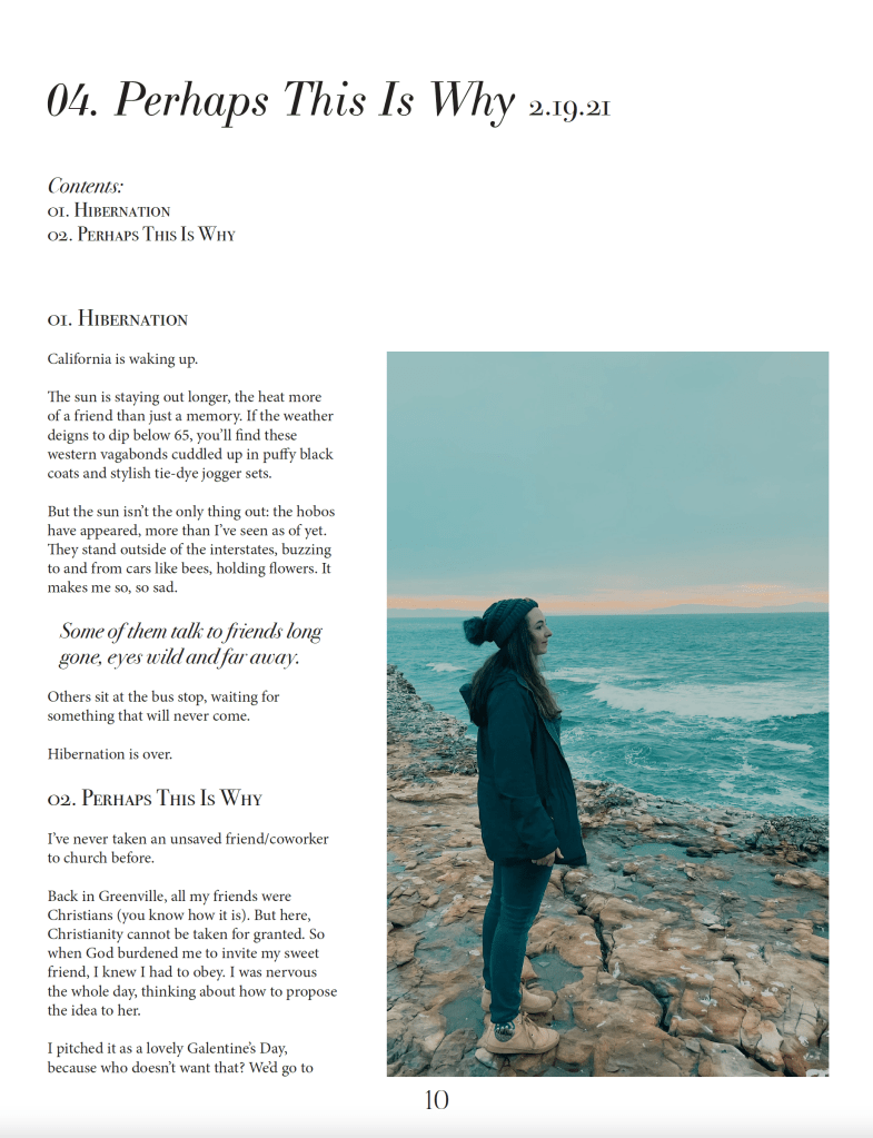 | I celebrated two years in LA last month, which is really no big deal EXCEPT the whole story of how I moved here is so innately tied to my faith. I thought that to celebrate (and also to do some design work because I miss doing book/magazine layout), I’d create a nice coffee-table type book collection of all my letters. You can sit down and read them all together, or read one every now and then when you need something to chuckle at or a reminder of God’s purpose in each of our lives. |