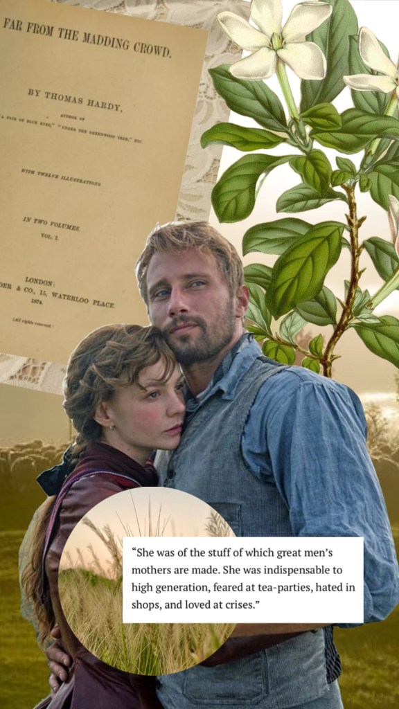 I also felt that the book makes Bathsheba out to be more of a flirt and less likeable than the movie portrayed her. Perhaps its because Carey Mulligan is so adorable and innocent-looking, but I feel the movie could’ve highlighted her faults more like the book did.
